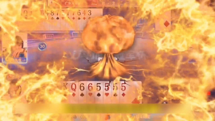 现在地主选择启动王炸拿牌,全对6,地主视角当中下家那10张牌最大是张k,那明k了,对k已经明k了。现在地主输牌,过单间,这牌输牌了,单k上家没过,既然你二二你出,打单圈下家都没走,先扔炸弹,这牌多输炸。上家没单间一扔,地主这牌就直接输牌,没有任何的悬念,过牌就尴尬了。